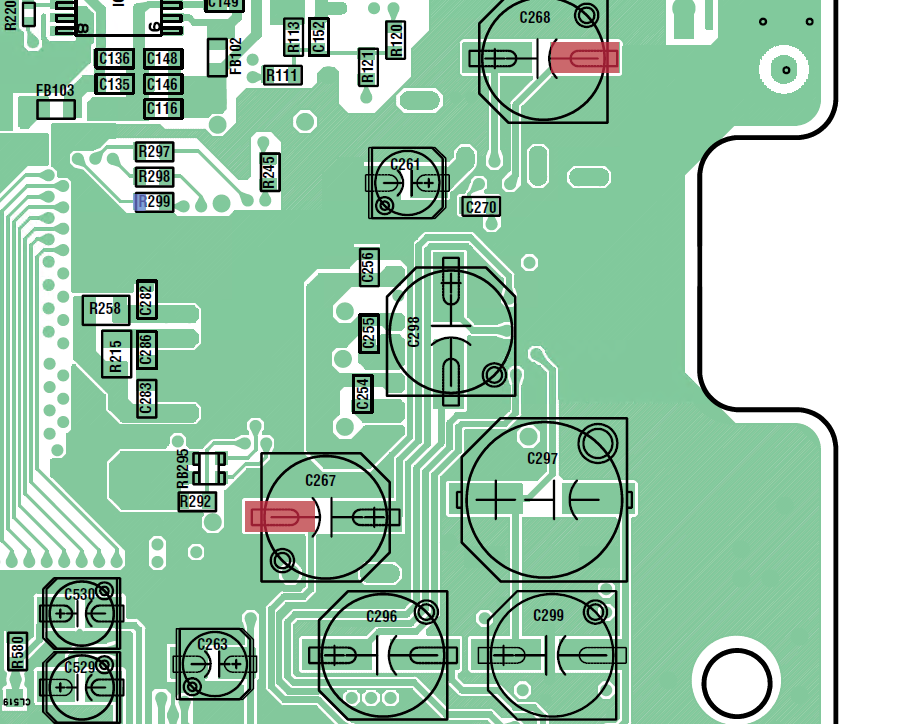 Capacitor to remove (Simulates trace cut of video output)
